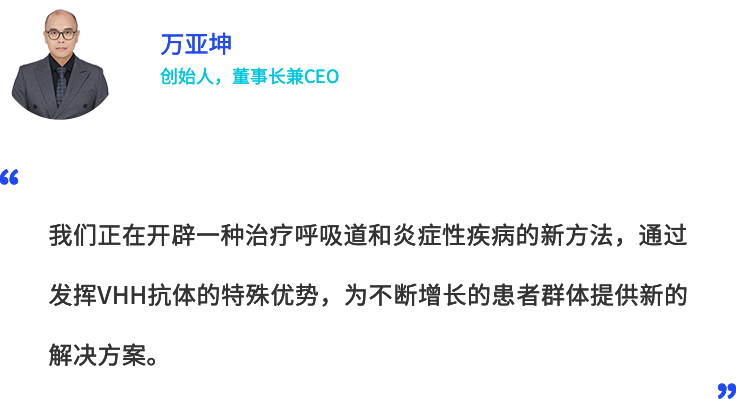 万亚坤博士致力于纳米抗体研究19年,拥有极为丰富的纳米抗体项目经验,在纳米抗体领域享有极高的声誉与知名度,曾入选中国科研实验室上海药物所“百人计划”、荣获江苏省六大人才高峰计划、教育部“高层次创造性人才计划”和“新世纪优秀人才”、“2021年度张江国家自主创新示范区杰出创新创业人才”“2024年浦东新区明珠领军人才”等荣誉称号。其创办的企业“BG大游集团生物”入选2020中国生物医药最具创新力企业50强、2022年中国医药创新种子企业100强,2022年专精特新中小企业。